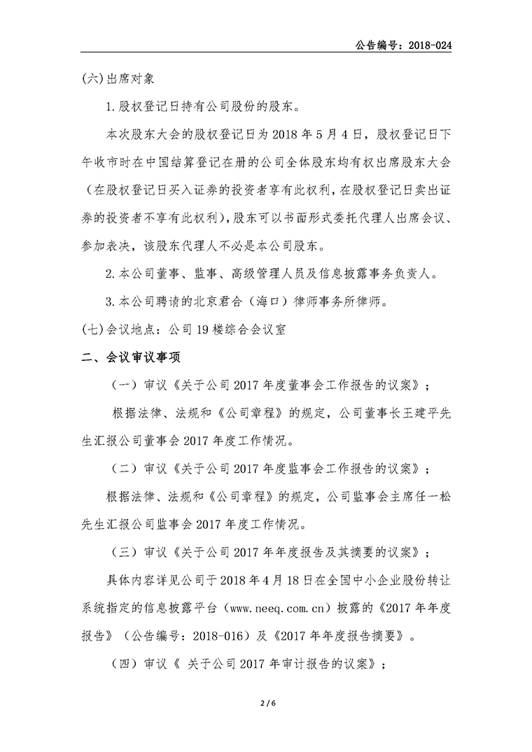 科海電子股份有限公司2017年年度股東大會通知的公告