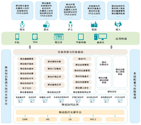 移動醫療就是通過使用移動通信技術——例如PDA移動電話衛星通信來提供醫療服務和信息,具體到移動互聯網領域,則以基于安卓和iOS等移動終端系統的醫療健康類App應用為主。移動醫療解決方案基于移動計算、智能識別和無線網絡而設計,實現醫護移動查房和床前護理、病人藥品和標本的智能識別、人員和設備的實時定位、病人呼叫的無線傳達功能等。系統不僅可以幫助醫院優化流程、提高醫療效率,同時可以幫助醫院實現“以病人為中心”的管理理念。